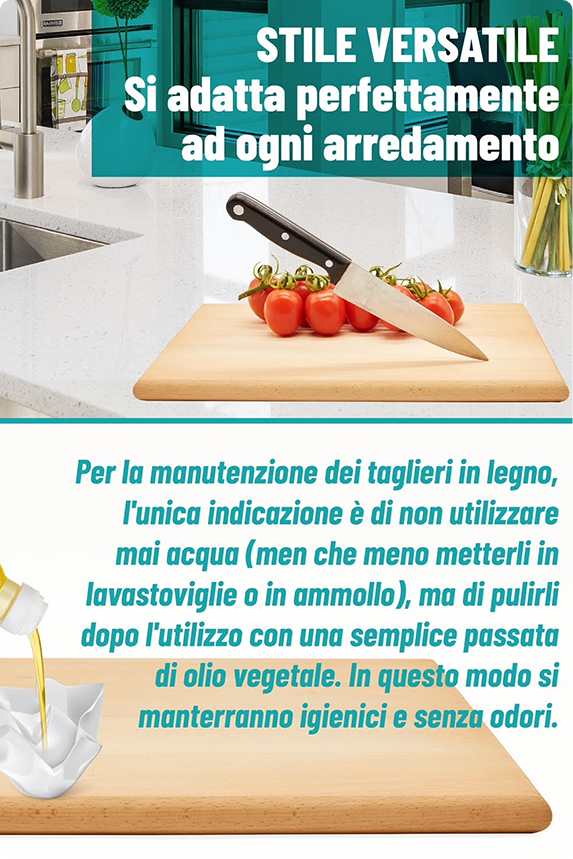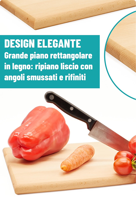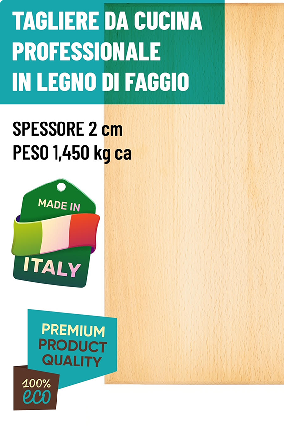 Dimensioni: 37x28x2 cm, legno di Faggio, Design semplice ed elegante, antibatterico, multiuso, robusto e duraturo, pulizia veloce, Made in Italy