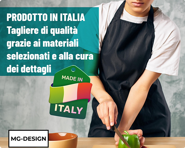 Il nostro tagliere è un prodotto Made in Italy, realizzato artigianalmente con materiali di alta qualità.